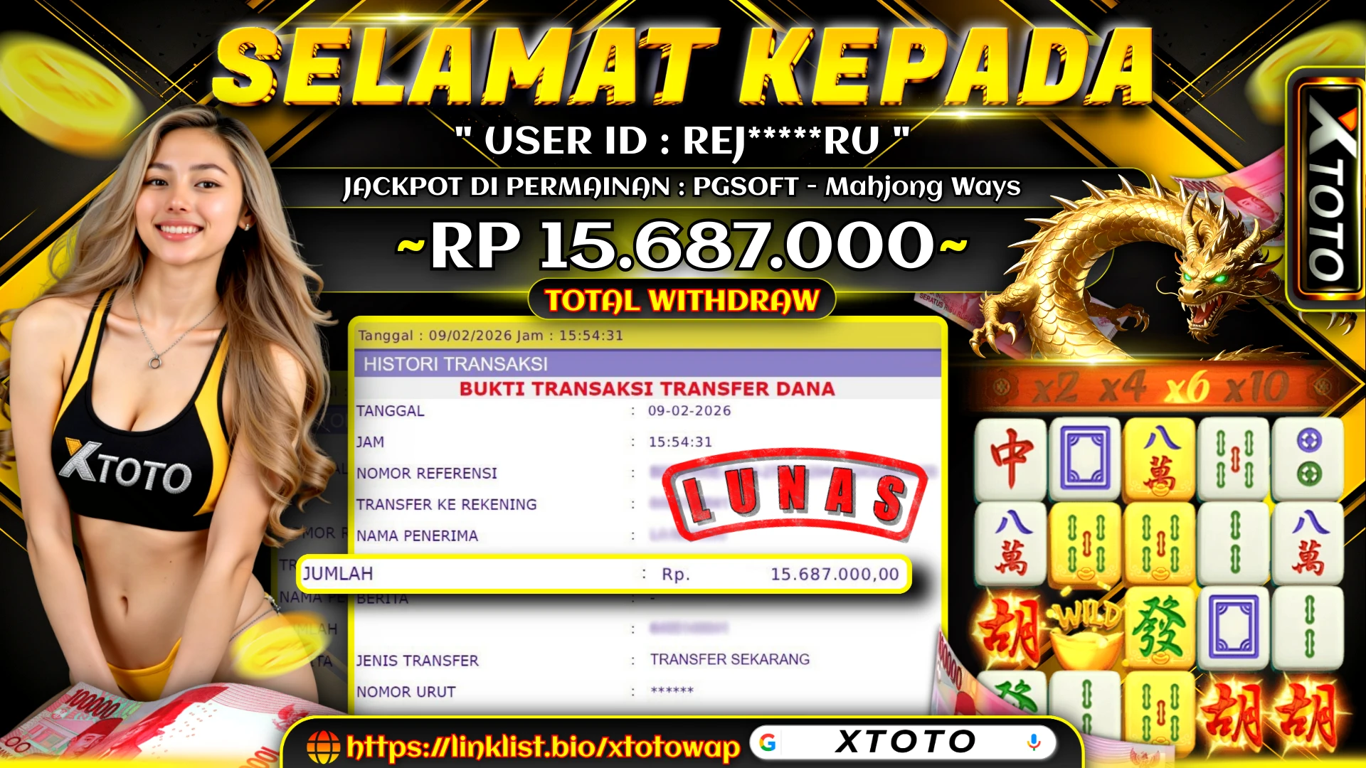Lihat DetailXTOTO | MENANG SLOT PGSOFT - MAHJONG WAYS 1 15,687,000 LUNASS ⚡⚡⚡