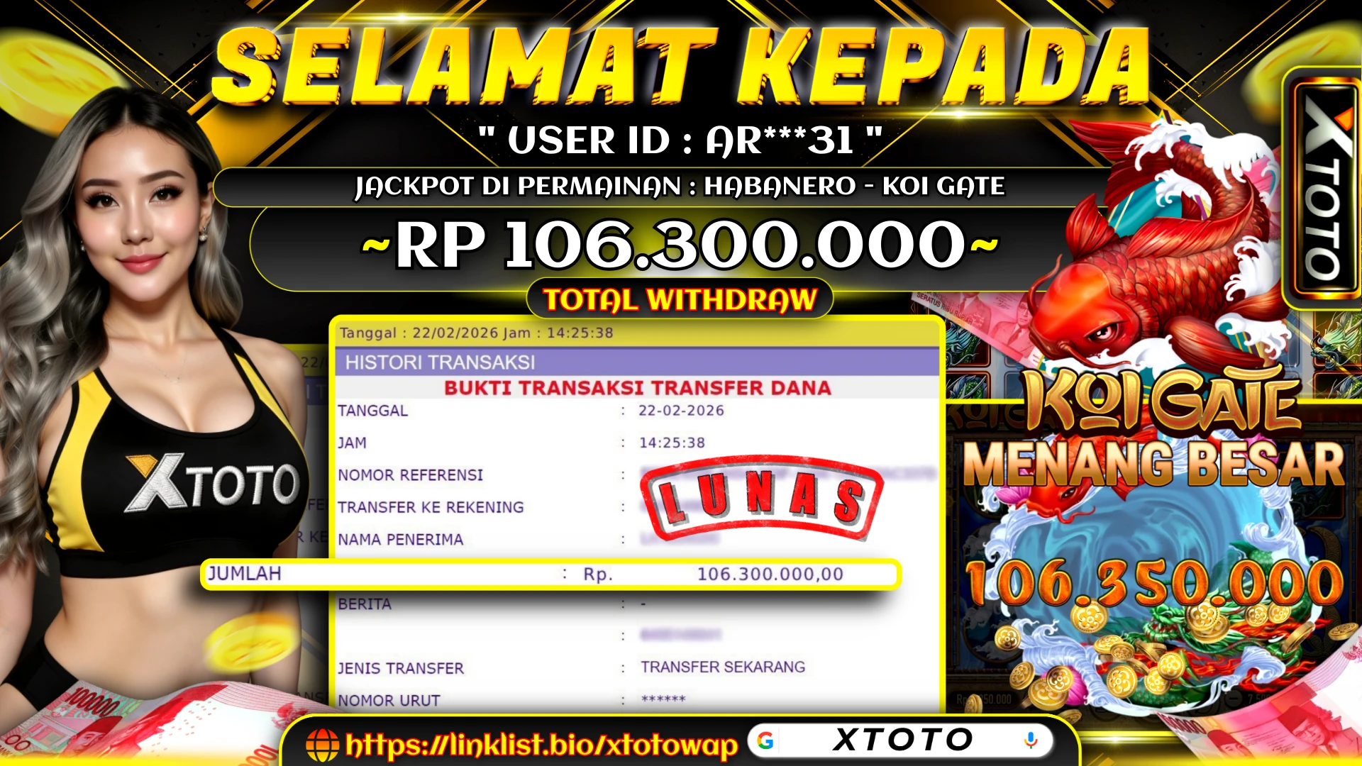 Lihat DetailXTOTO | MENANG SLOT HABANERO - KOI GATE 106,300,000 LUNASS ⚡⚡⚡