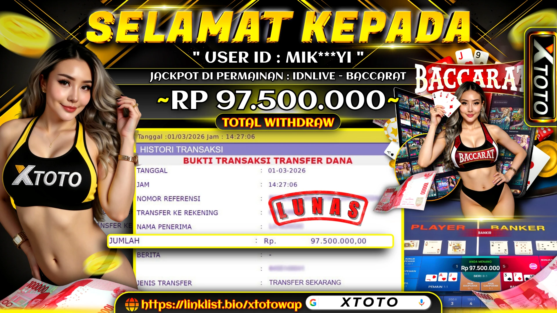 Lihat DetailXTOTO | MENANG CASINO IDNLIVE - BACCARAT 97,500,000 LUNASS ⚡⚡⚡